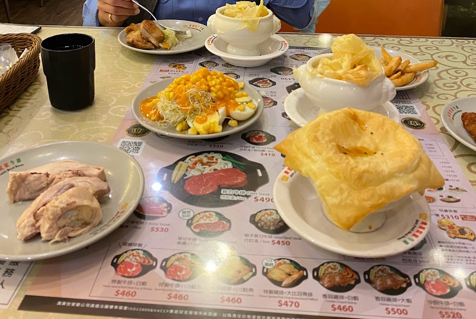 牛排味道一如往常美味,自助區品項充足但整潔度需再加強,除此之外都還不錯~