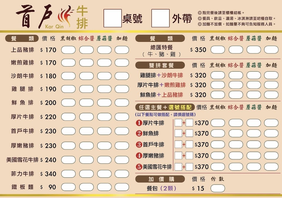 2024最新在地推薦餐廳的菜單_首戶牛排的菜單、圖片