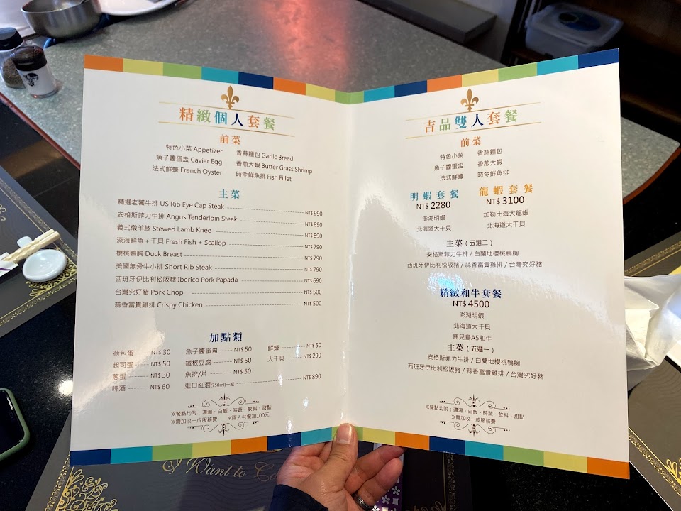 吉 明蝦干貝(ok),牛肉(ok),伊比利豬肉(太鹹) 雙人套餐像一人份量都沒很多 所以沒有搭白飯應該會吃不飽/夏 自選主餐 覺得也都蠻好吃的