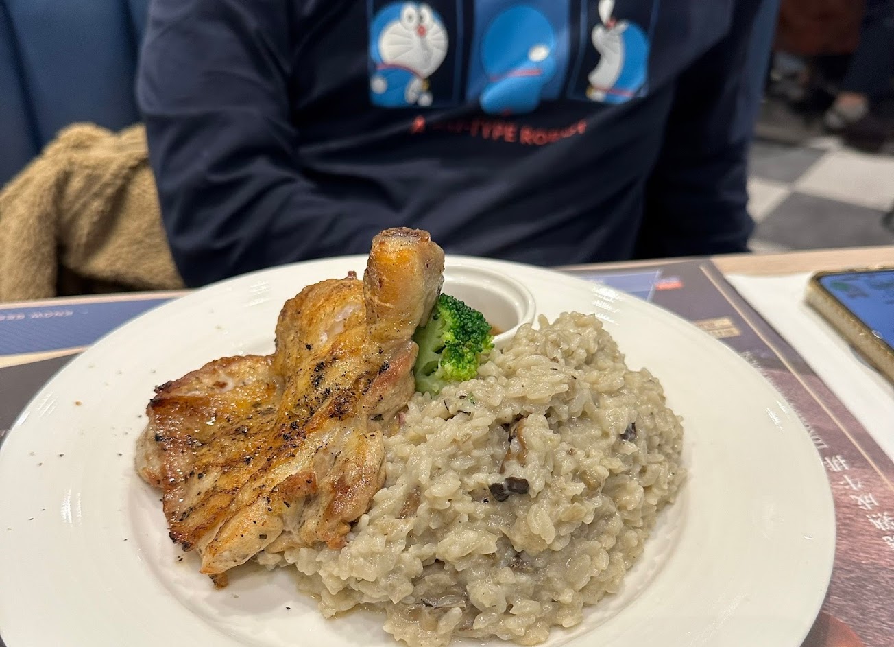 這次點雞腿排+牛菇菌燉飯,雞肉很嫩,燉飯也很好吃,相當入味。