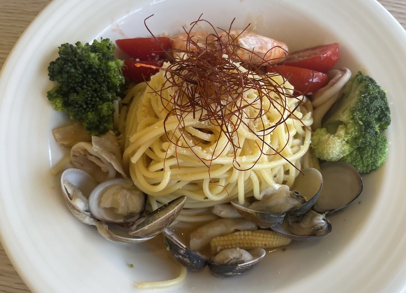 點了一盤蒜香蛤蜊義大利麵