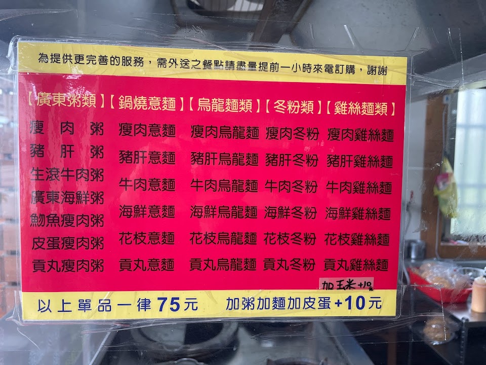 已遷到新址,搬到更靠近斜坡處,店員親切,餐點一律都80元,粥類料稍微比較單調一些,僅僅肉跟蔥,肉絲量給的還可以