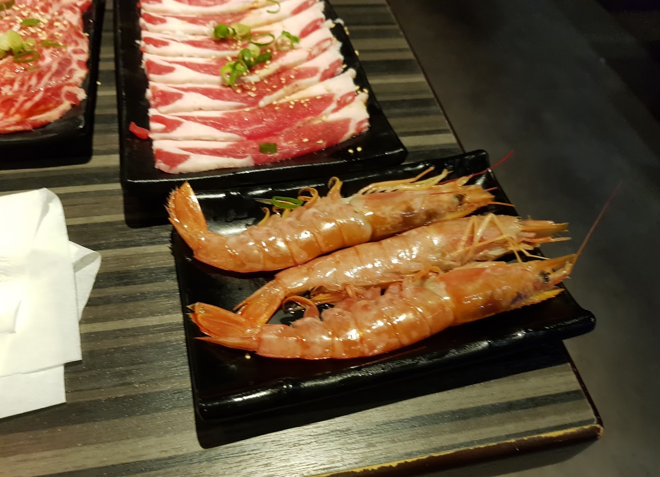 肉類種類多,海鮮很新鮮,這次去尤其喜歡天使紅蝦,超讚!服務人員超貼心,一拿起菜單就立刻問你需不需要點餐,換烤網的頻率也很高。很愉快的用餐體驗,下次還會再去~~~
