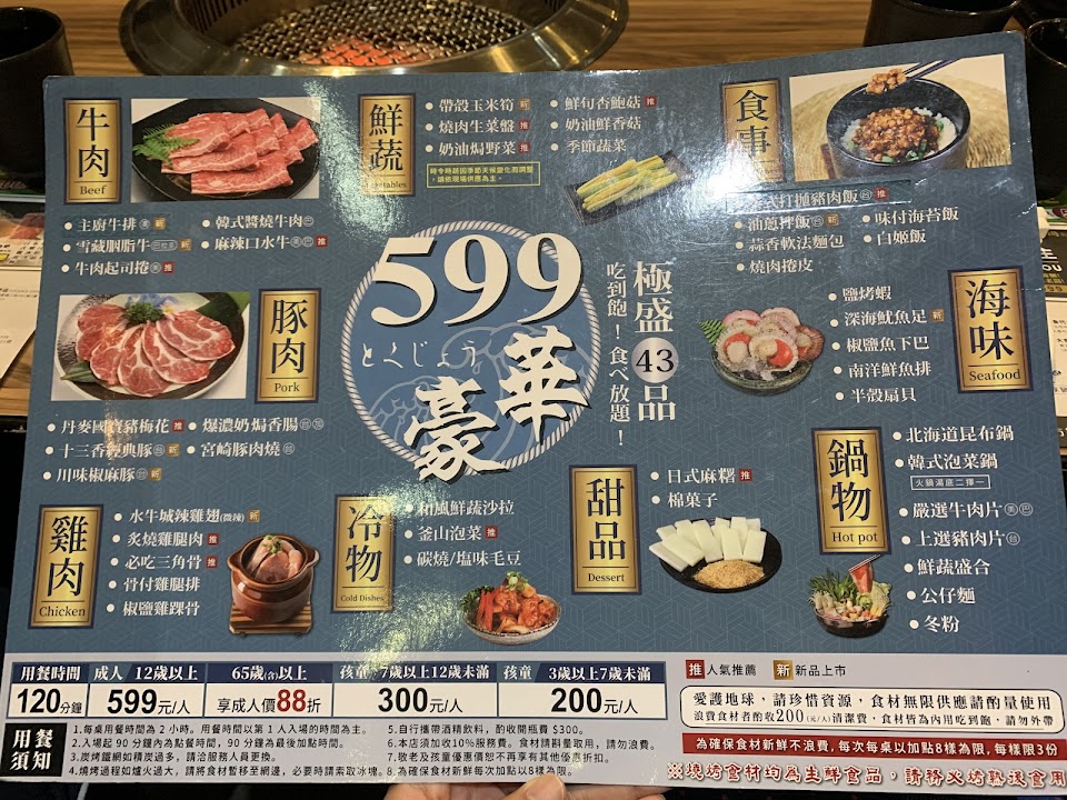 肉品選項少、肉碎像角邊料、調味肉佔多數、烤網很會沾黏、烤溫一直不夠(薄肉片完全烤不完) 挺失望的? …