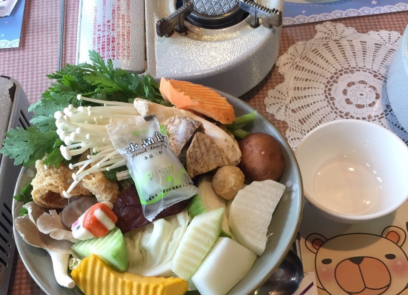 戶外區很適合小朋友遊玩(溜滑梯、玩沙區、餵魚),餐廳佈置擺飾鄉村風,環境整潔,餐點大約380元以上,佔位的兒童有低消150元,火鍋類不錯吃,份量蠻多的。