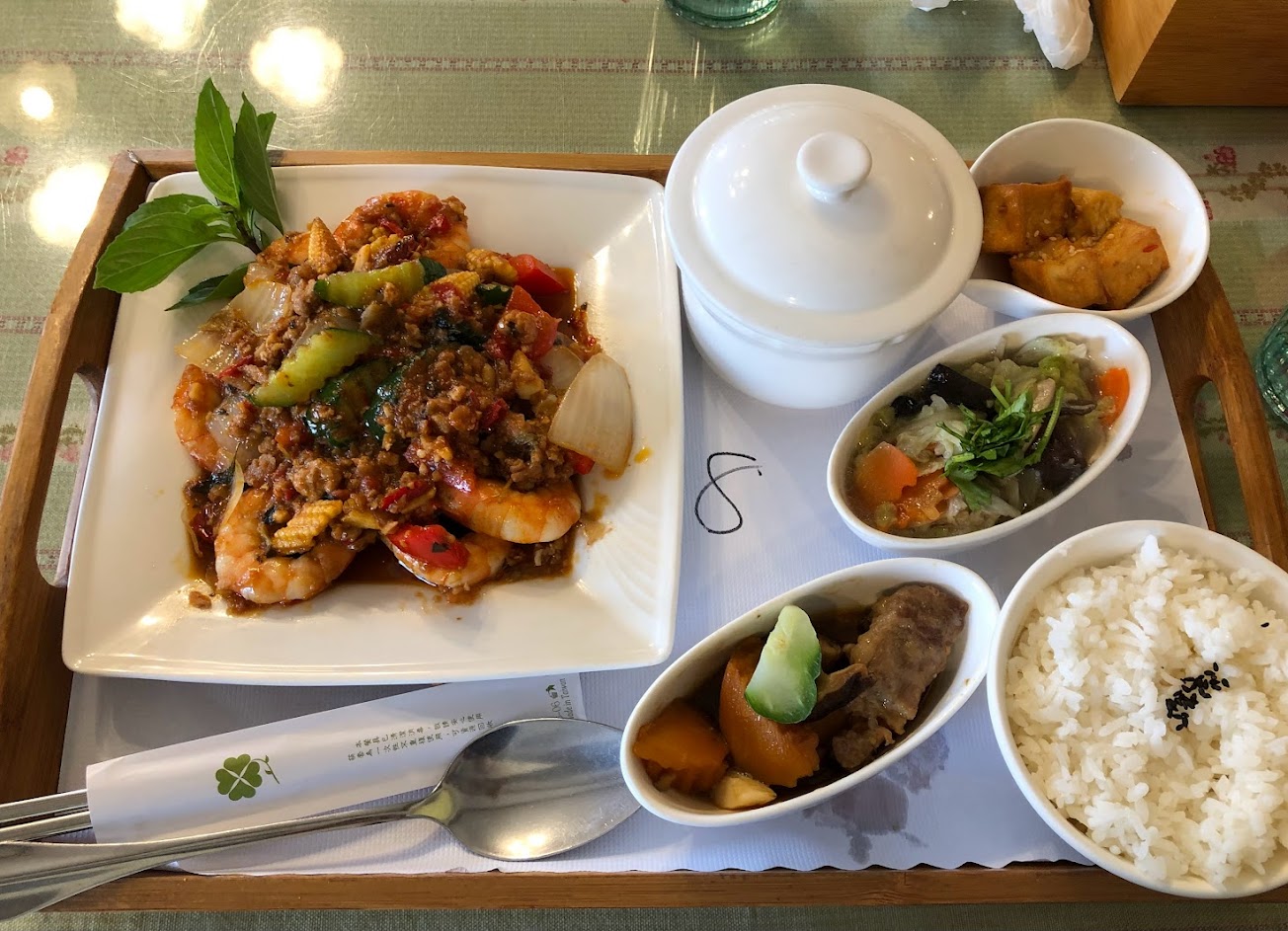 餐點:精緻又實惠。超推薦泰式鮮蝦套餐、蝦殼店家已經貼心的替客人剝好。除了吃到蝦子的鮮甜外、泰式酸辣完全融入蝦肉中、酸酸辣辣彷彿回到18歲戀愛的時代。