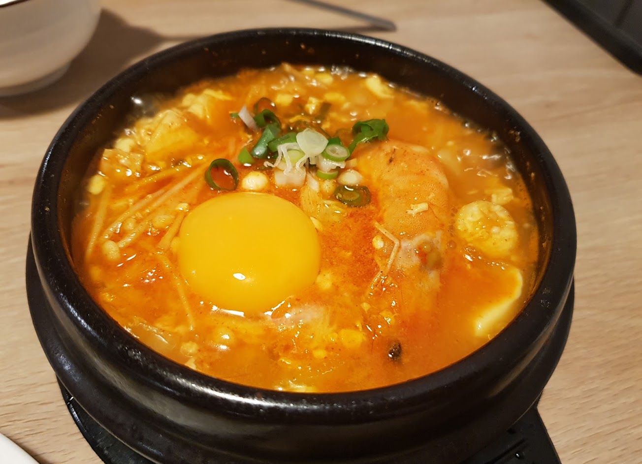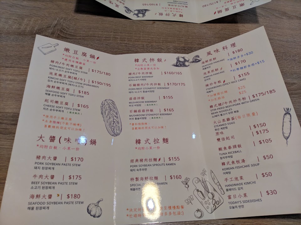 每次經過都大排長龍、真的不誇張,今天剛好有機會去吃看看。內用座位區不大、建議11點還沒營業前在門口等、就不用花時間排隊,因為店面小,內用座位有限,每位吃飯的客人說話音量都比大聲的,如果怕吵雜的人建議千萬不要來,真的千萬不要來,人多嘴雜,那種說話吵雜聲會影響吃飯心情與食慾,口味跟一般的韓式料理差不多,兩人吃飯點了一個牛肉嫩豆腐鍋跟一份海鮮多多煎餅,吃完很空虛的感覺,肚子8分飽左右、料理普普,沒有好吃到想再次捧場,如果要選擇的話、建議去尚順廣場的涓豆腐吃。因為廚房在前台、所以油煙味很重、草草吃完就離開了,後面還有很多人在排隊,只能說部落客、網紅推薦的、不是每個人都適用