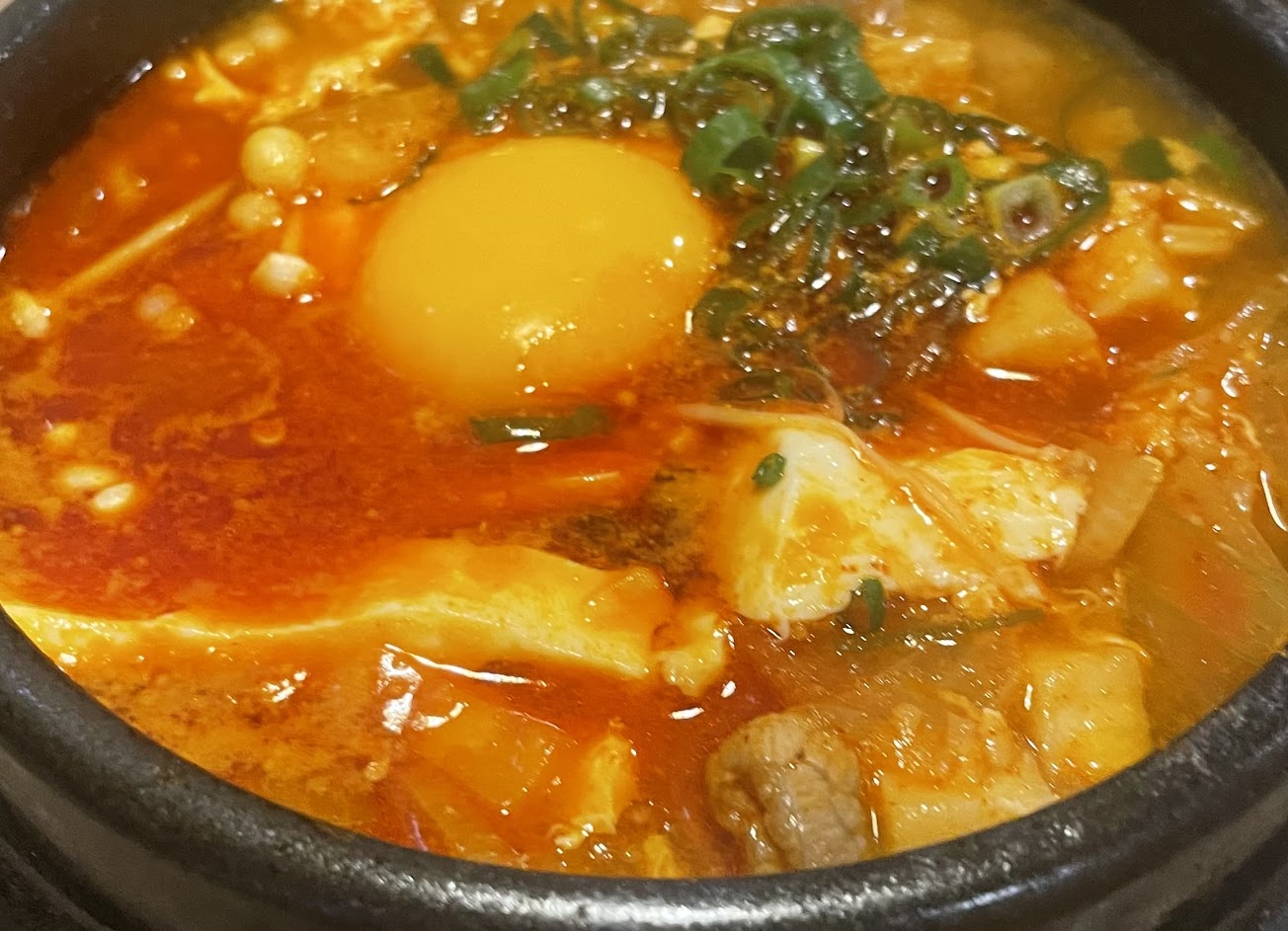 石鍋拌飯/豆腐鍋類/海鮮煎餅都非常好吃,火山蒸蛋今天底部有些燒焦帶苦看個人喜好,餐點份量都很夠,吃飯時間人很多記得先打電話預約不然可能會白跑一趟。