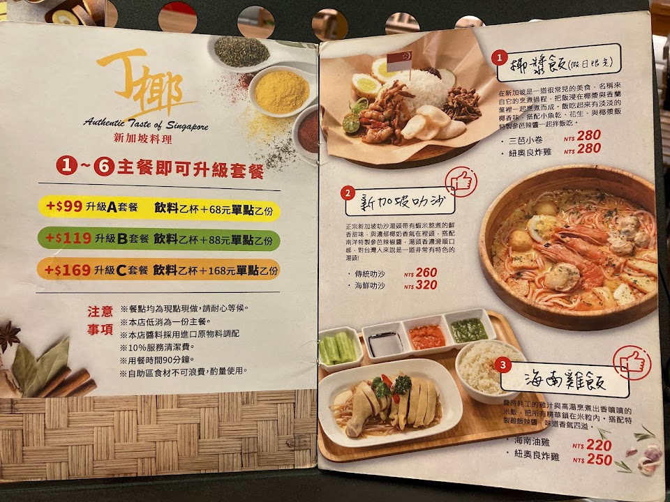 椰漿飯很特別,雖然好像有點辣,但又是不吃辣的人也能接受的??,搭配小魚乾跟花生很下飯,甚至超越了配餐的雞肉,當我去過新加坡了~ 且寫評論可以享用自助bar …