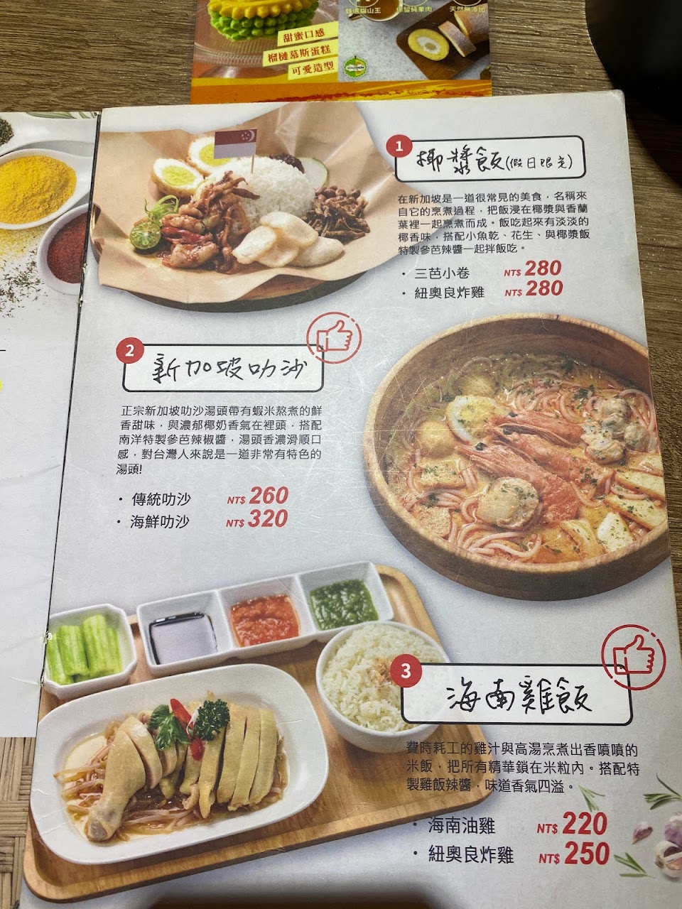 椰漿飯很特別,雖然好像有點辣,但又是不吃辣的人也能接受的??,搭配小魚乾跟花生很下飯,甚至超越了配餐的雞肉,當我去過新加坡了~