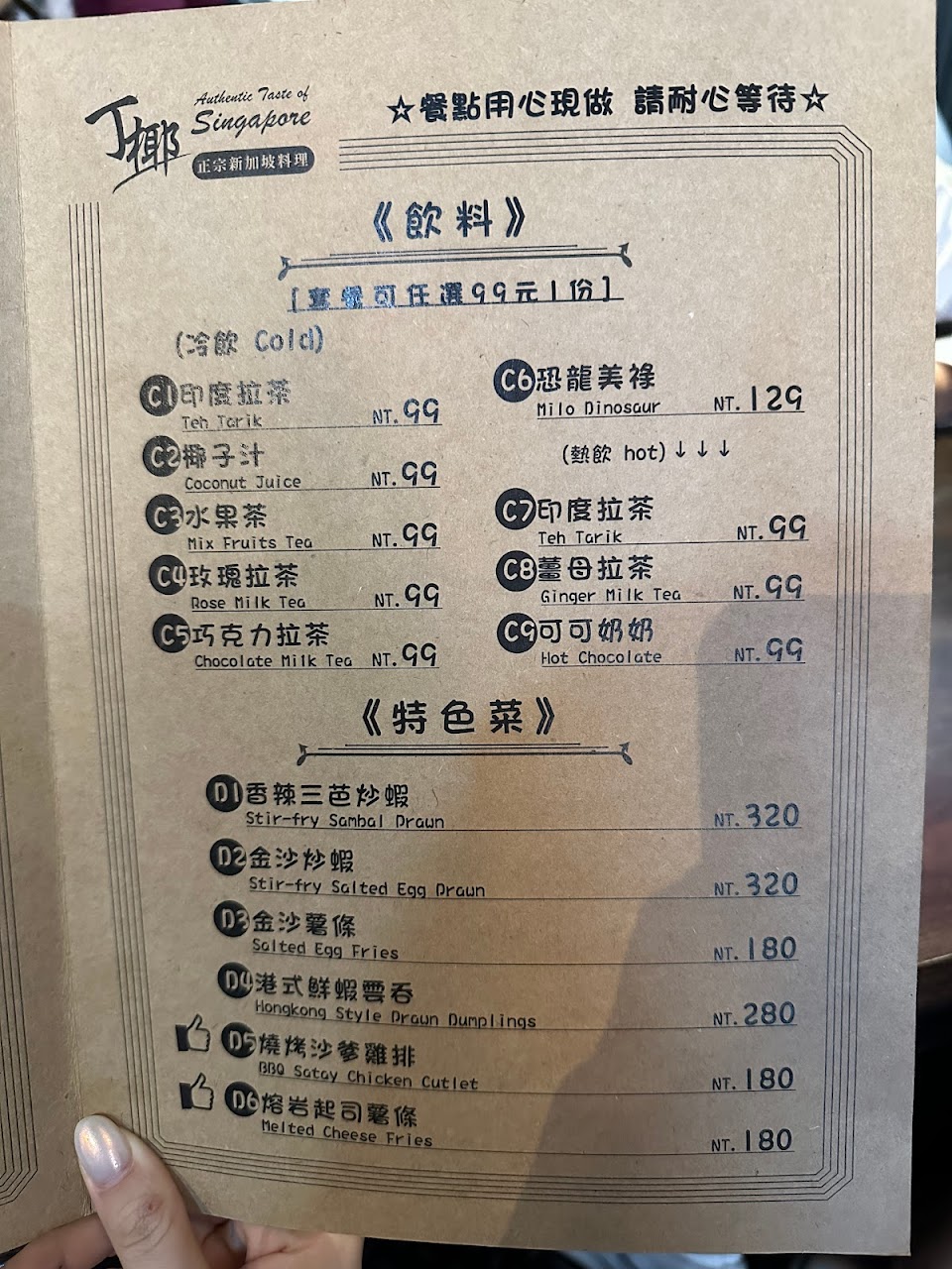特地從台北來嘗試新加坡美食,果然沒有讓人失望,點的每一樣東西都超好吃又大份,都吃不完打包了!服務人員也都很棒很nice!
