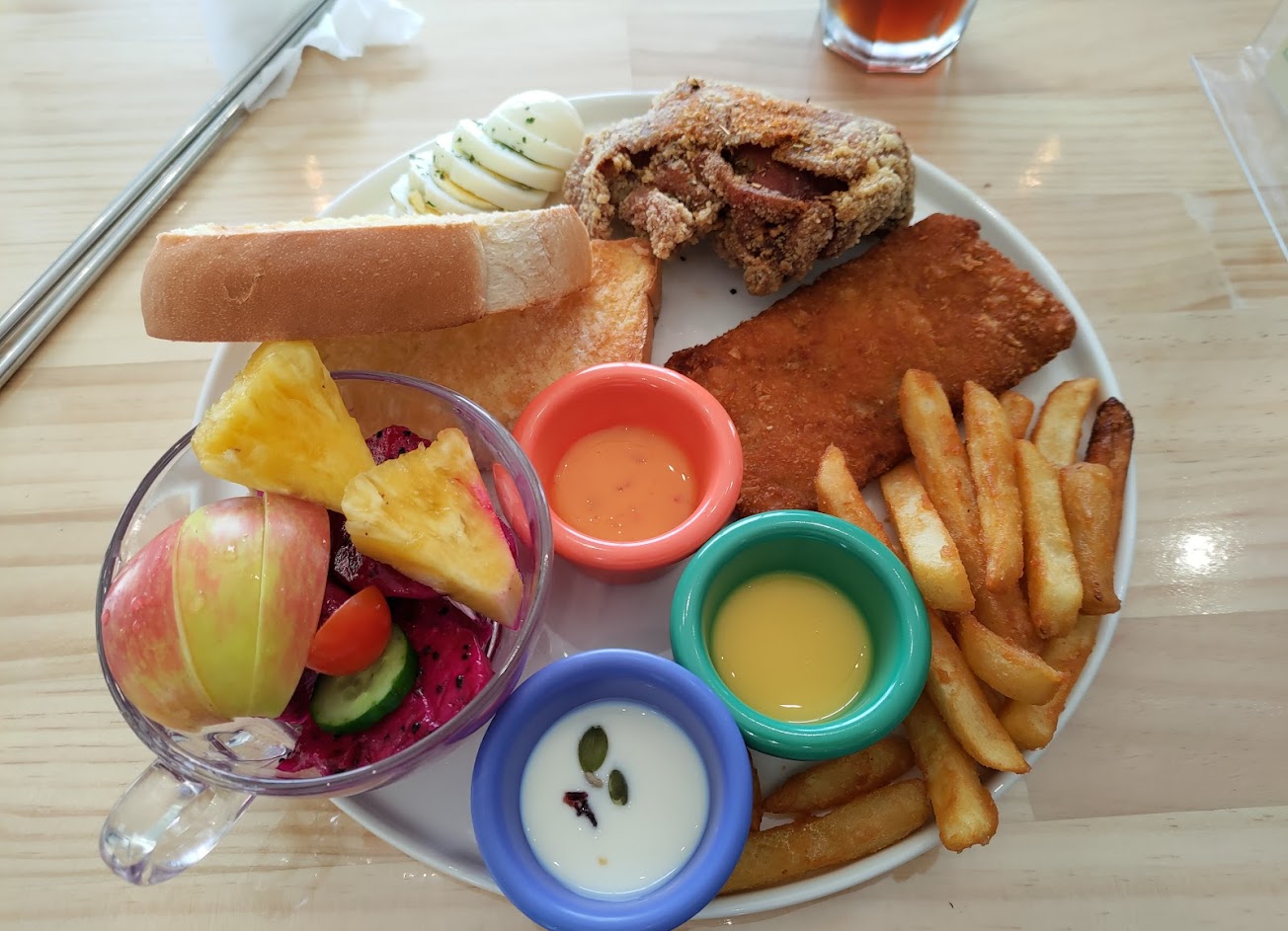 食物真的很好吃,感受到老闆的用心,食材新鮮品質也好,朋友一吃還要我去問老闆吐司要怎麼做才能那樣好吃?炸雞也很juicy 不乾柴,還有水果茶也很好喝喔