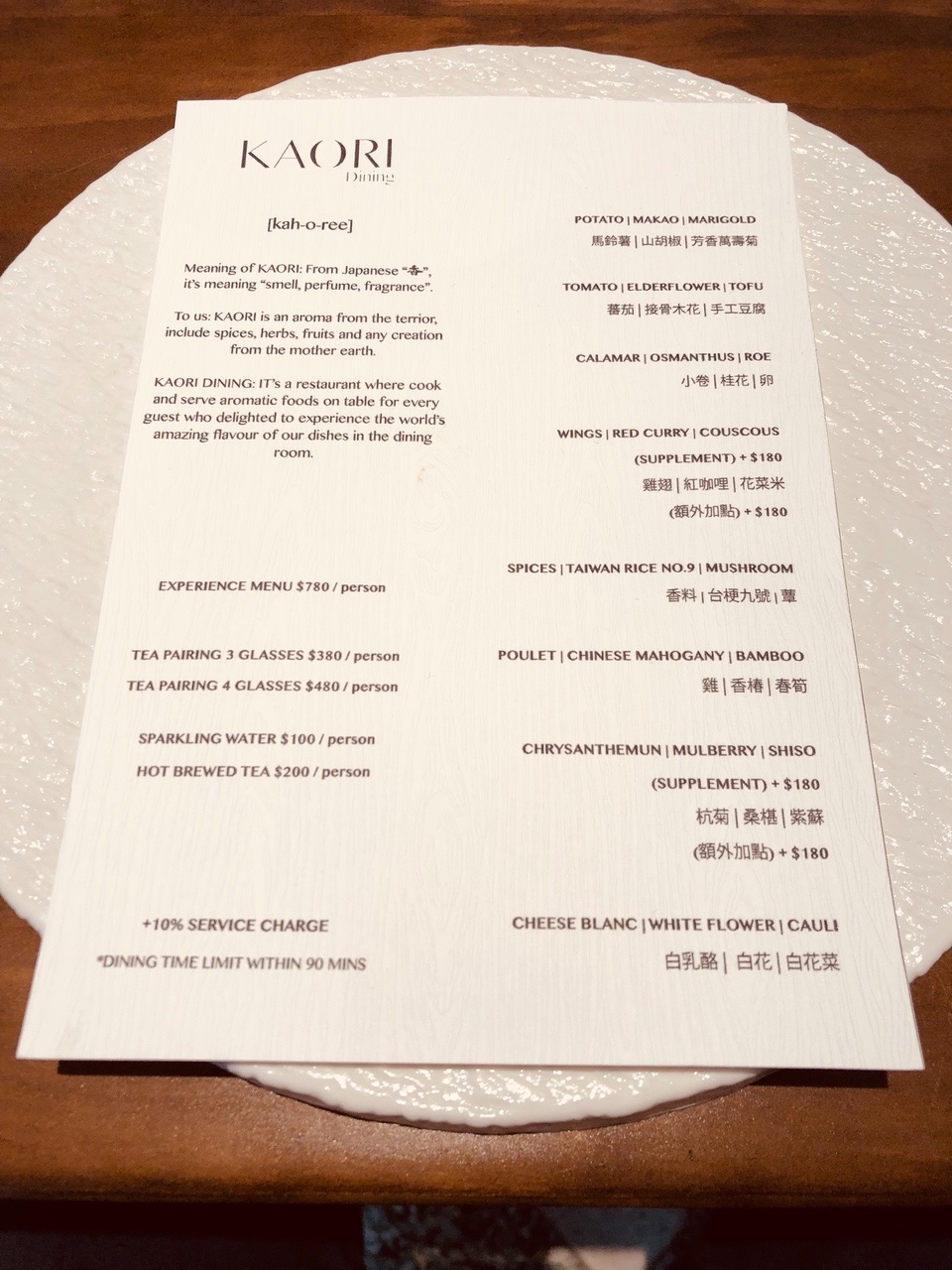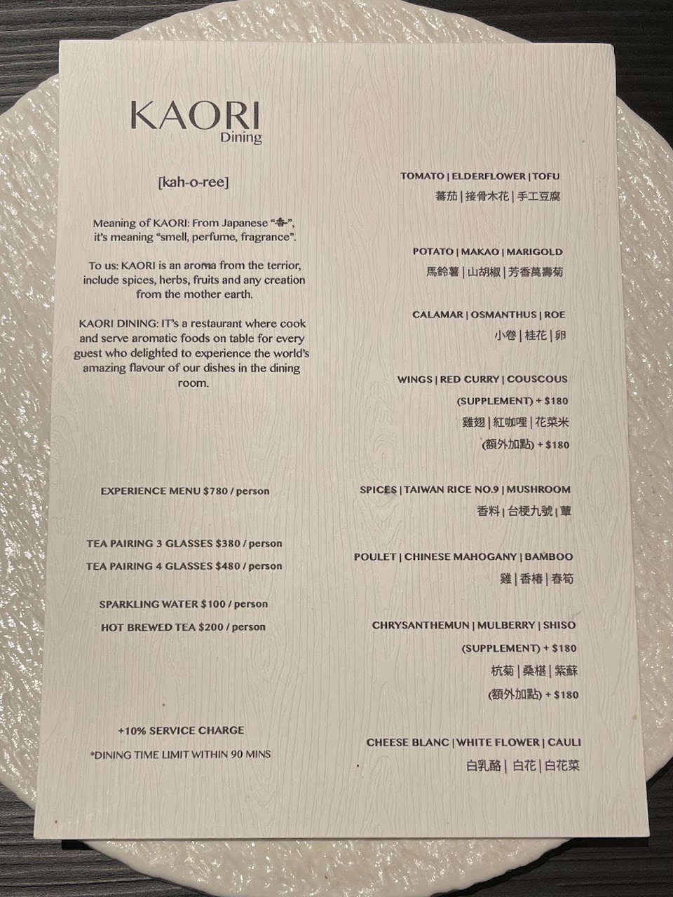 2024最新在地推薦餐廳的菜單_KAORI Dining的菜單、圖片