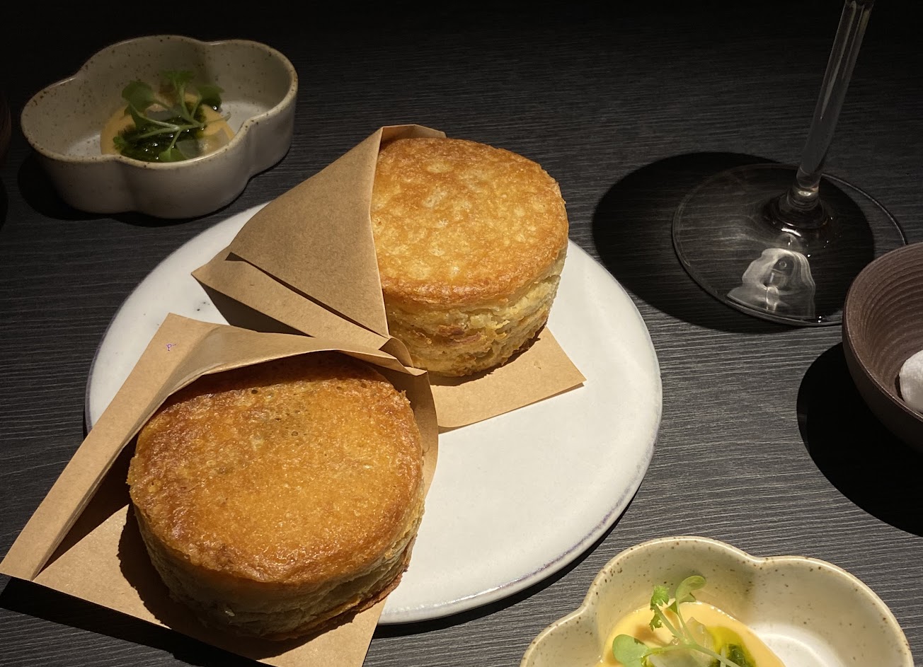 ,如果要已 fine dining 當目標的話,要注意到的細節是遠遠超過食物的。比如空間太擠,音樂與人聲吵雜,廁所稍嫌混亂,還有在客人面前擺一個大盆栽讓人非常壓迫。食物方面雞翅與松阪豬使用舒肥讓人感到無法理解。卵/貝柱/桂花的味道也有些衝突。其他部分好吃無疑問。總之多多加油。