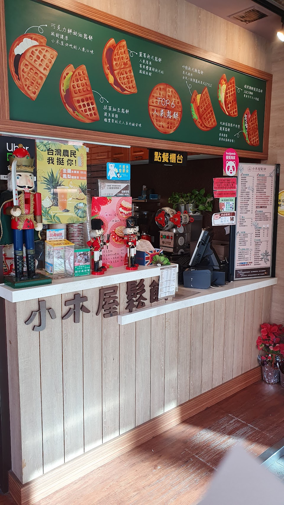 小木屋一直漲價,鬆餅還是很好吃,不過飲料一直都很水。店員蠻親切的,店門口的熊貓外送有些停的亂七八糟。