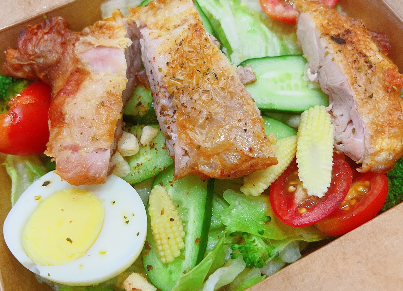 在foodpanda點了雞腿沙拉跟牛排沙拉,都很好吃,搭配胡麻醬很讚。