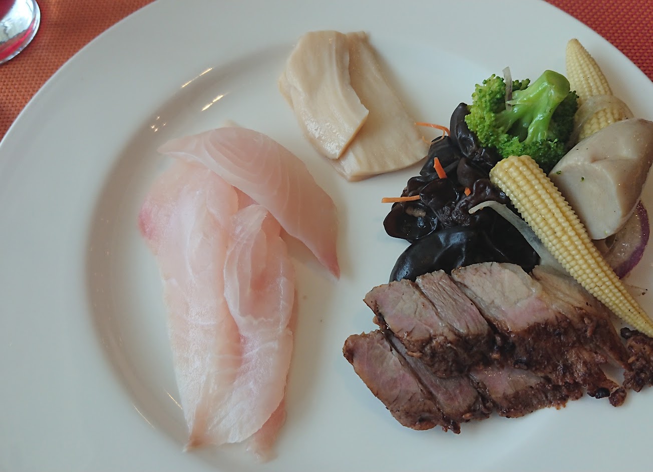 熱食部分基本的炒飯會有供應 另外再搭配魚下巴 豬肉 雞肉的料理 這個就看有沒有合大家的胃 另外這次還有供應牛排 牛肉是一整大塊的原肉先做燒烤 在依據你的需求由主廚切下厚度 如果你覺得太生 你也可以要求主廚幫你做回烤的動作 因為需要時間料理 所以就晚點再過來取用即可