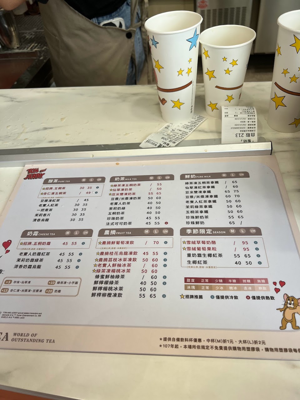 天氣很冷,路過點杯熱飲,拿到時才發現是冰塊放了一堆的冰茶,反問店員一開始點的時候即已告知要熱的,店員像是倒帶兼repeat似的一直重覆說:”冰塊甜度是固定的”反覆講了好幾遍,也不直接說沒有做熱的,講話沒重點,為何不一開始客人點到非熱飲系列就告知客人,喝了一口覺得像是水稀釋很多倍的烏龍茶很難喝,立馬倒掉還發現將近六分滿的冰塊在裡面,浪費錢,下次不會再光顧
