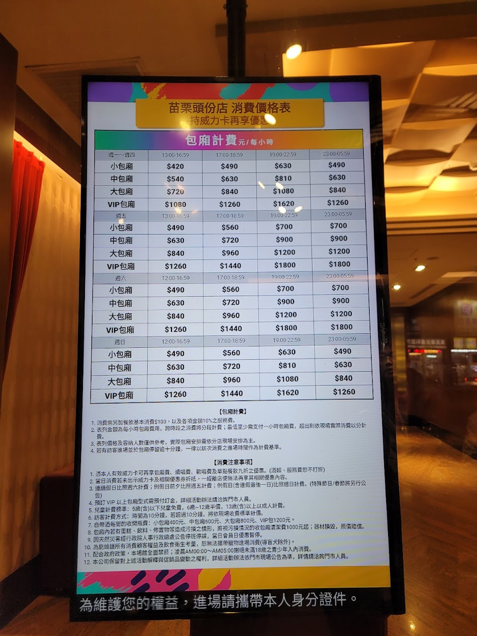 疫情剛開放時候,包廂非常乾淨與無菸味。再去的時候乾淨程度差很多,並且包廂味道總是沾在衣服上。設備還可以,但是越來越多歌曲變成風景人物伴唱帶。希望能夠提升。