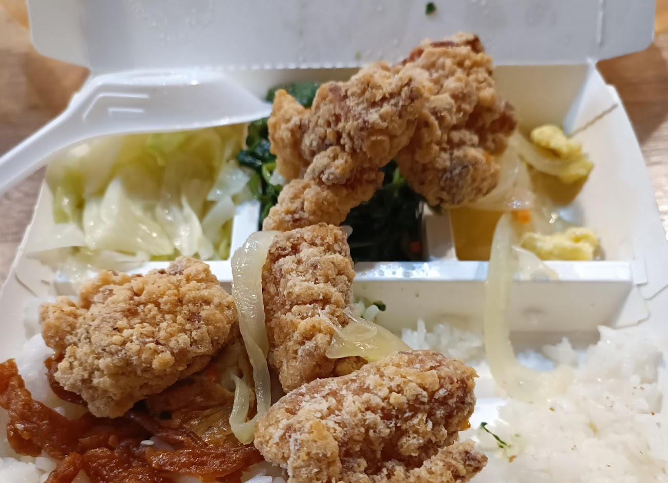 照燒雞排便當雞排跟醬都好吃,就算外帶回家冷掉也真的還是很讚。當時吃到肉的時候,吃起來不會很柴意外蠻啾C的。女性來吃會非常有飽足感,飽!!!