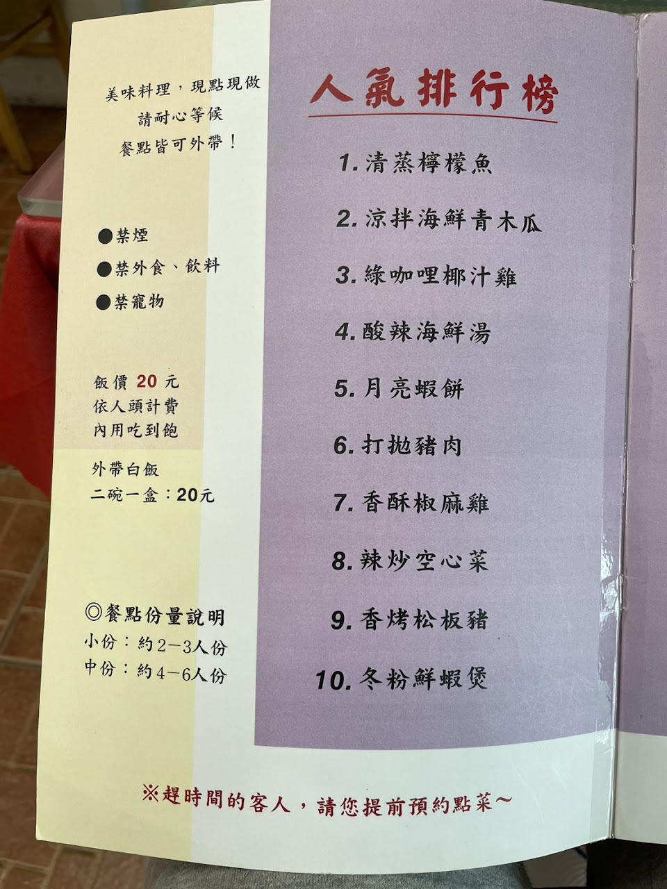 菜單上的人氣排行榜!!!)