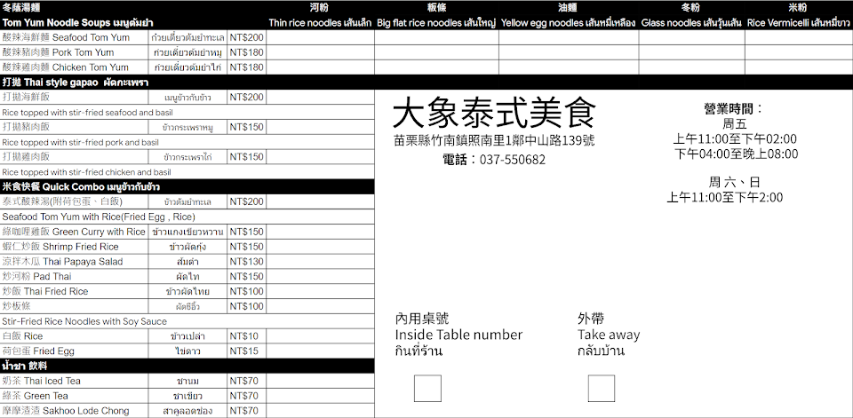 2024最新在地推薦餐廳的菜單_NiNa Thai Food 大象泰式美食的菜單、圖片