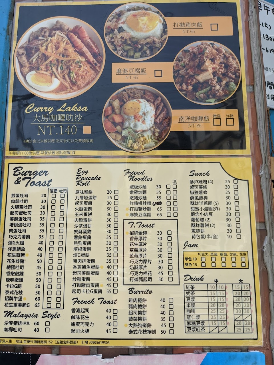 超級~好吃,老闆人超級好,很親切很客氣 服務 內用 餐點類型 早午餐 平均每人消費金額 $1-200 餐點:5 服務:5 氣氛:5 建議的餐點 牛肉漢堡, 鹹味花生法式吐司, 卡啦脆雞漢堡, 南洋咖哩飯 停車位 很多停車位 附近的停車場 免費路邊停車 停車場 附近有學校位置滿好找的