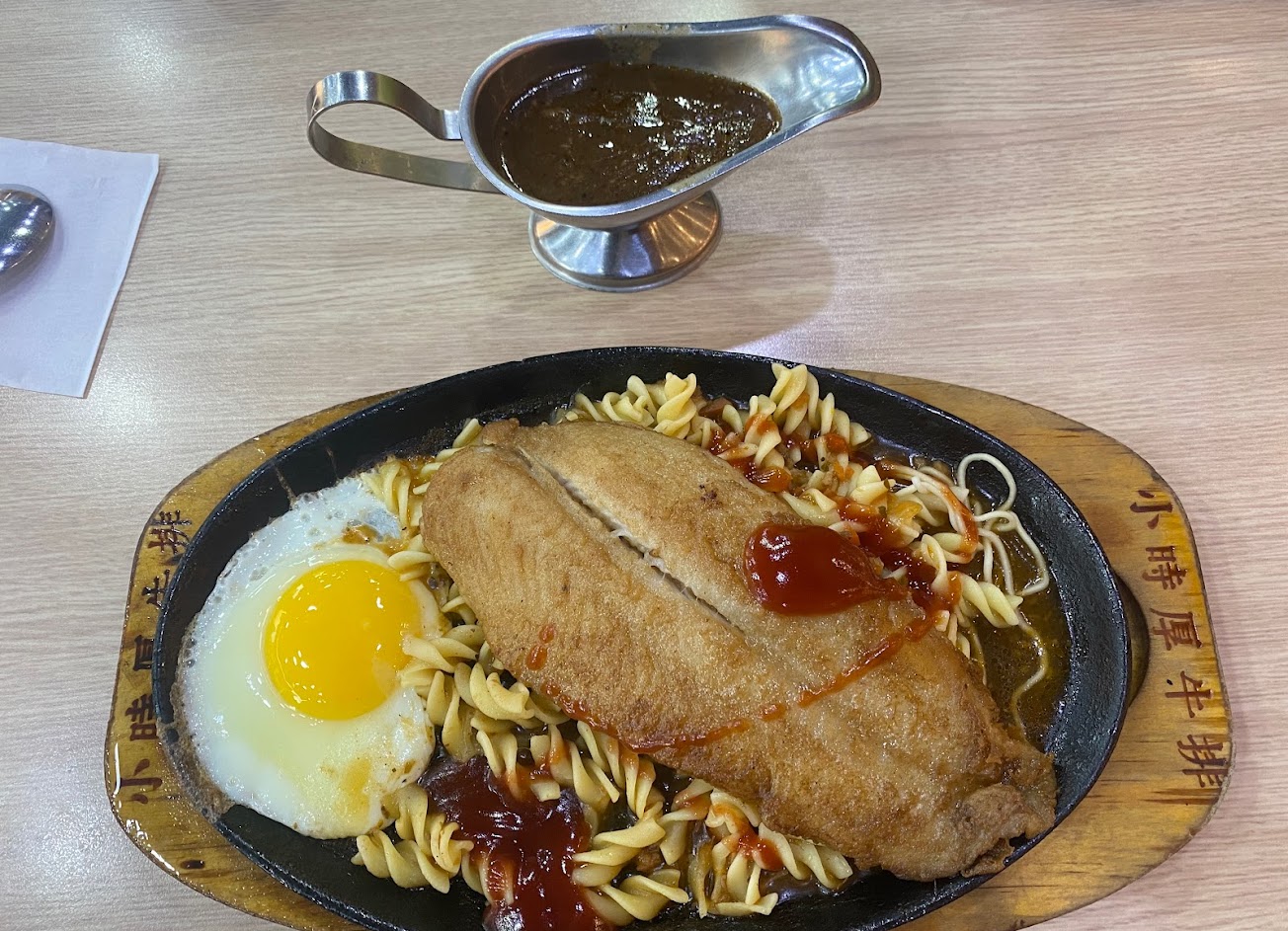 金屬餐具(刀叉)清潔有待加強上面還有髒污痕跡,加點鐵板麵過了10分鐘還不來,不等了。ps.當時客人不是很多。