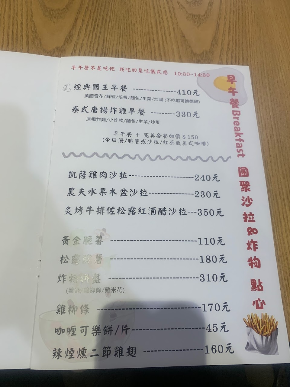 整體很好,因為我們是剛營業的第一桌,火侯控制不穩,國王早餐的牛肉與培根沒有到位,大蝦是燒焦味道是苦的非炭香味;建議拿紅外線測溫槍試試,不然評論區都是一樣的問題再發生!