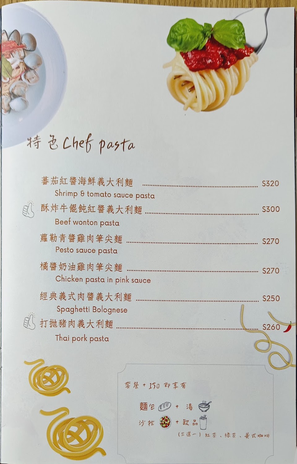 肉醬義大利麵的醬超級水,水到整個都滿出來,味道很像以前營養午餐義大利麵的味道,卻要價280