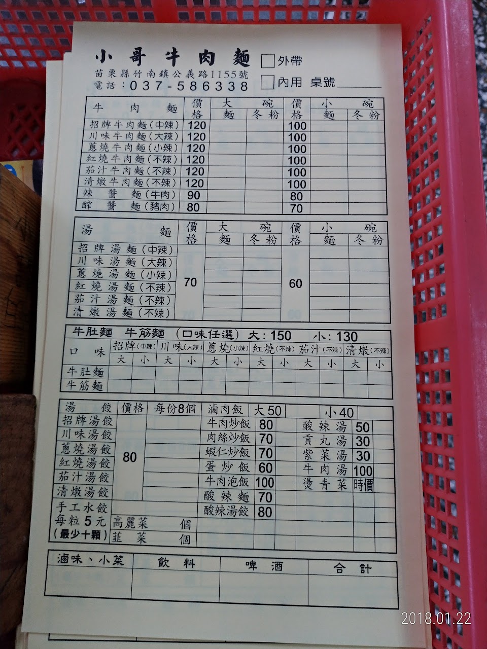 2024最新在地推薦餐廳的菜單_小哥牛肉麵的菜單、圖片