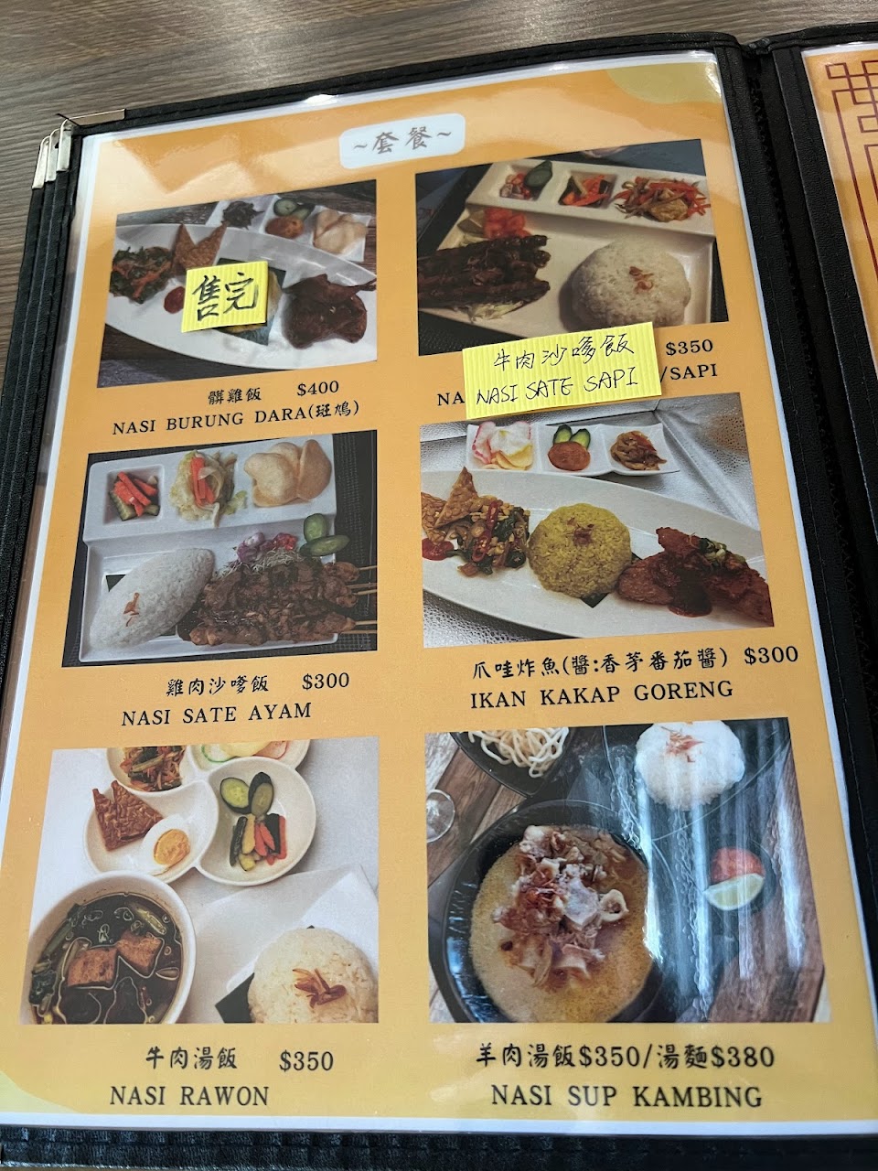2人用餐點了羊肉麵、牛肉沙嗲飯、轟炸雞、炸巧克力香蕉、斑蘭奶茶。飯麵有套餐,含小菜,小菜清爽,能中和掉肉味,而肉都處理恰到好處。老闆非常親切,用餐時還會關心餐點是否合口味。整體而言是很棒的用餐經驗