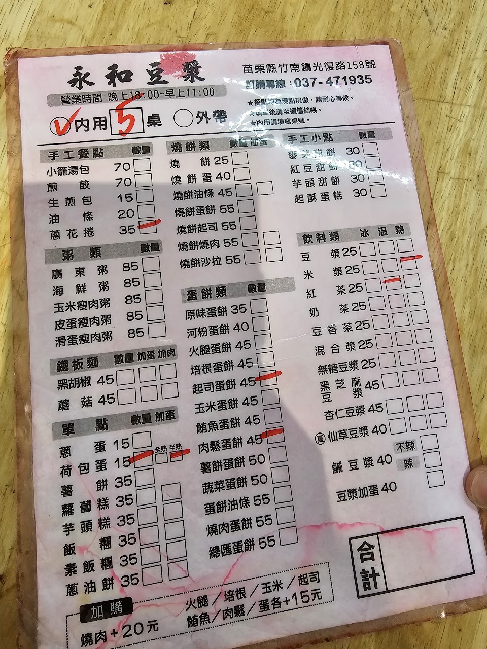 我點的餐點就剩下鹹豆漿了!我要等最後你們下班幫我製作