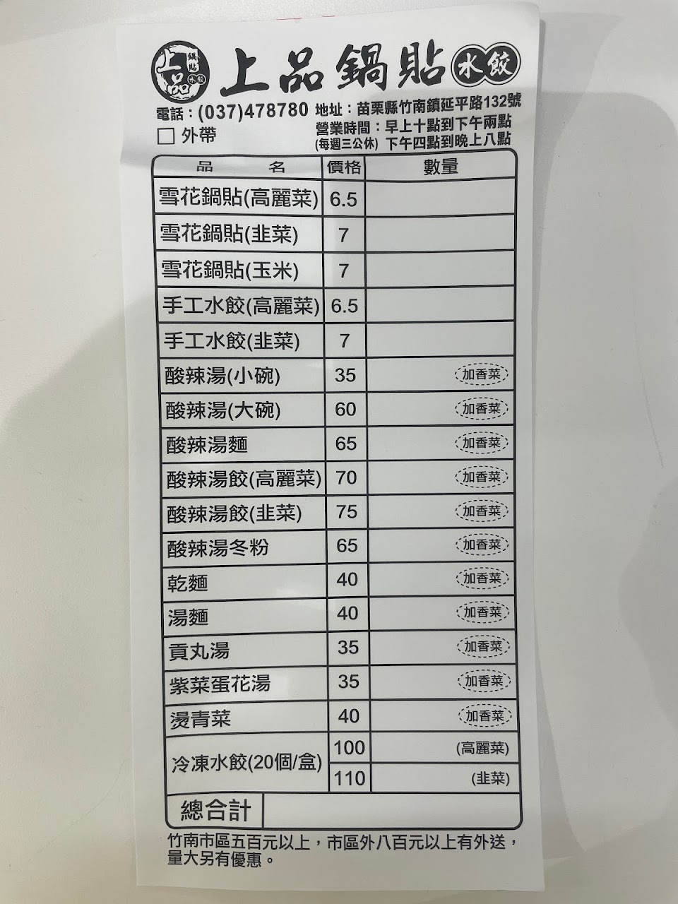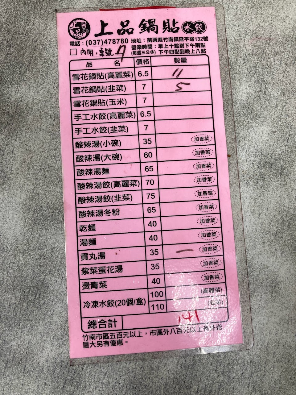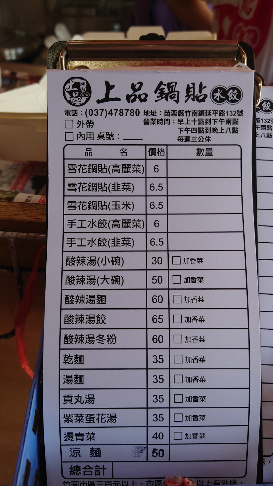 2024最新在地推薦餐廳的菜單_上品鍋貼的菜單、圖片