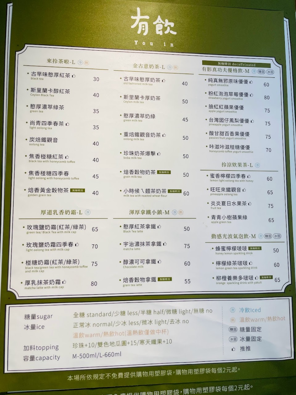 2024最新在地推薦餐廳的菜單_有飲 Youin 創意飲品-台北公館店的菜單、圖片