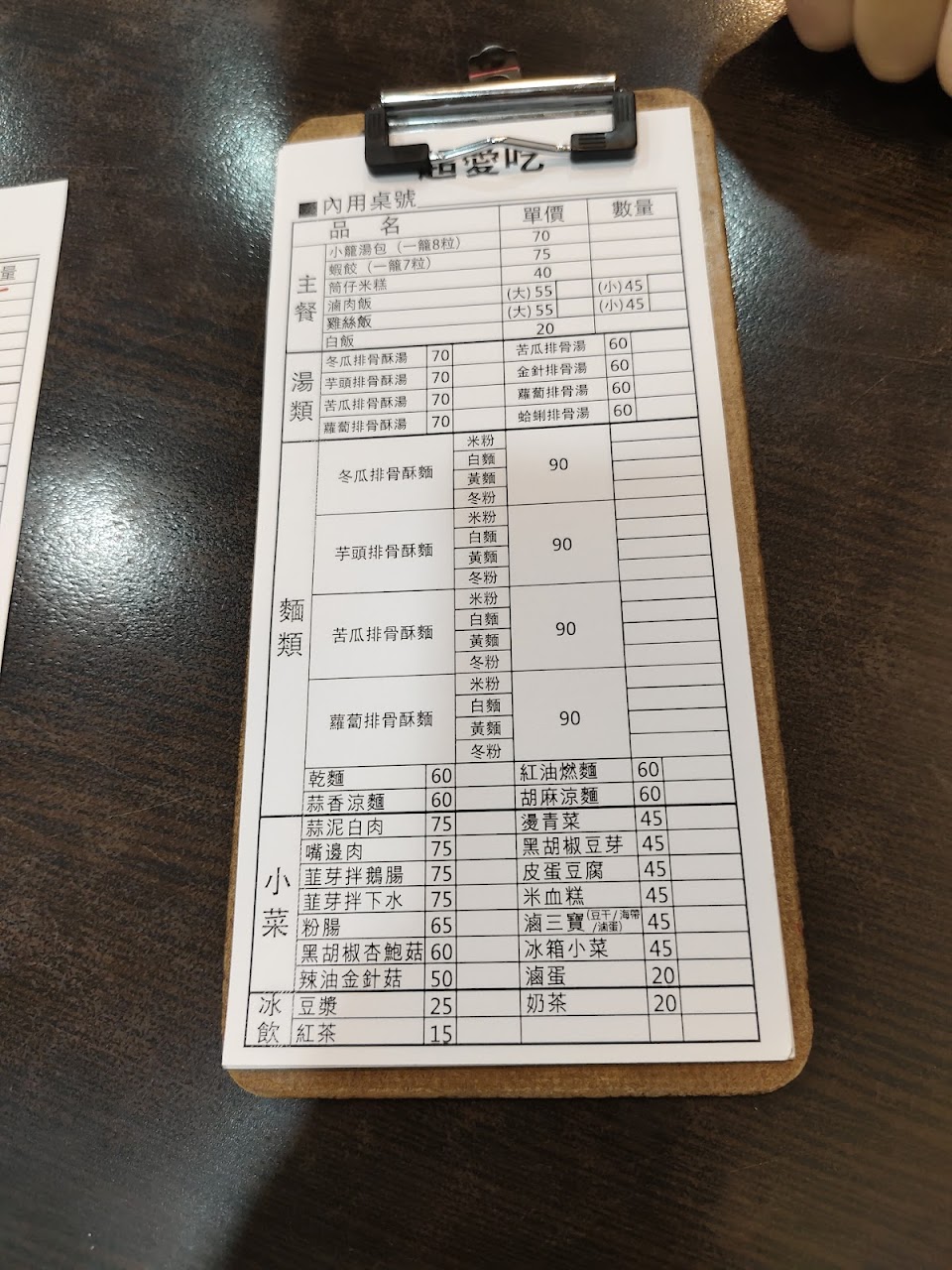 坐下來點餐後拿菜單到外面