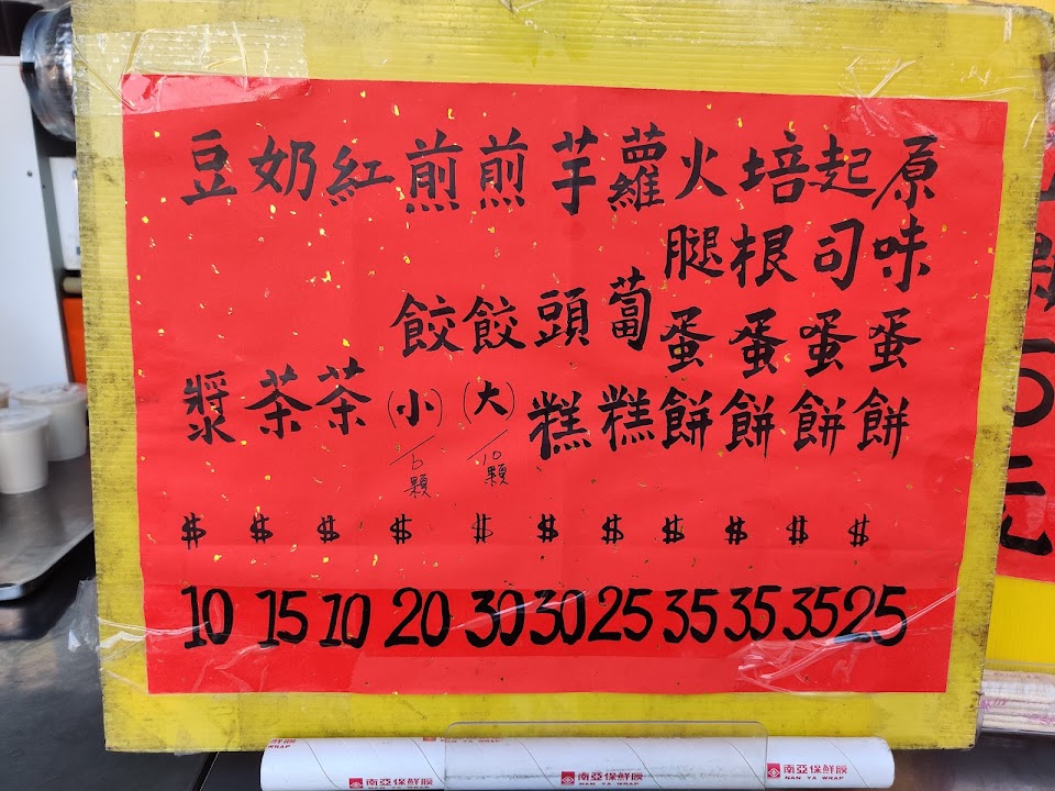 今天點了蛋餅NTD 20、蘿蔔糕NTD30、煎餃*10 =NTD 30.古早味的人氣排隊早餐店,因為高CP。對面的人氣肉包吃膩了,可以來這邊吃吃道地的中式早餐。 豆漿都是半糖的。