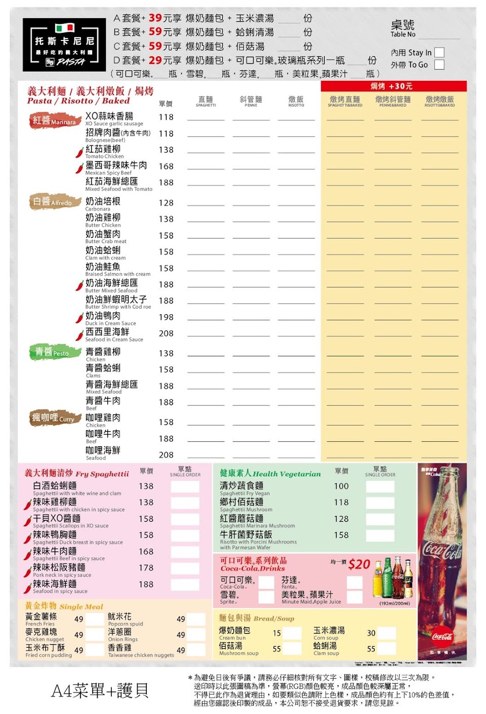 2024最新在地推薦餐廳的菜單_帕司答義大利麵(原托斯卡尼尼義大利麵-竹南店)的菜單、圖片