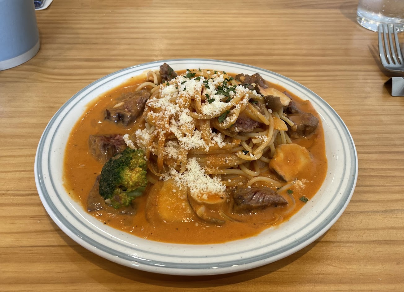 匈牙利紅酒牛肉燉飯沒有紅酒味反而像番茄燉飯、培根蛋黃義大利麵的醬太油膩