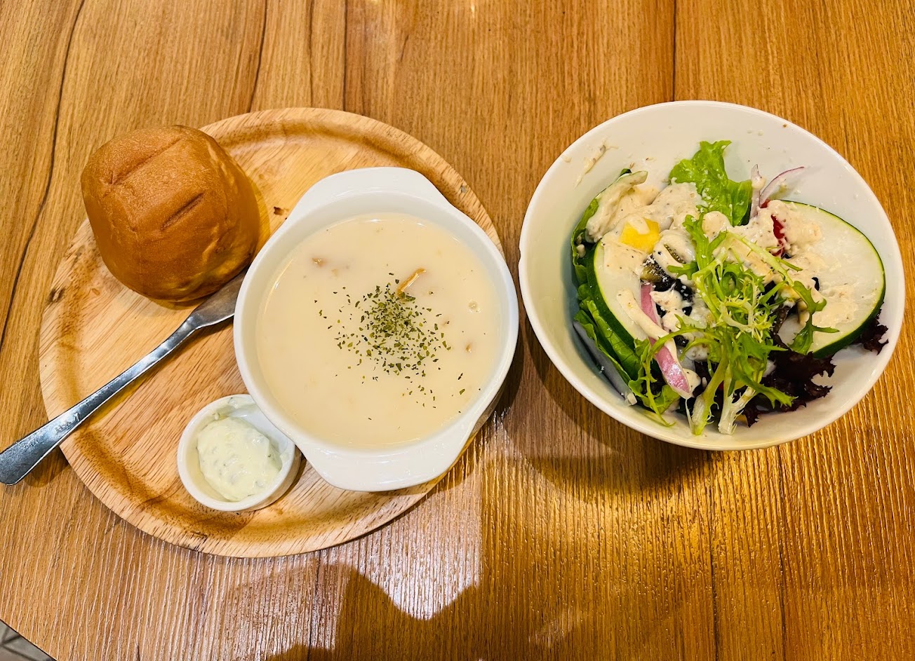 配餐選擇A套餐附麵包、沙拉/湯品擇一、飲料