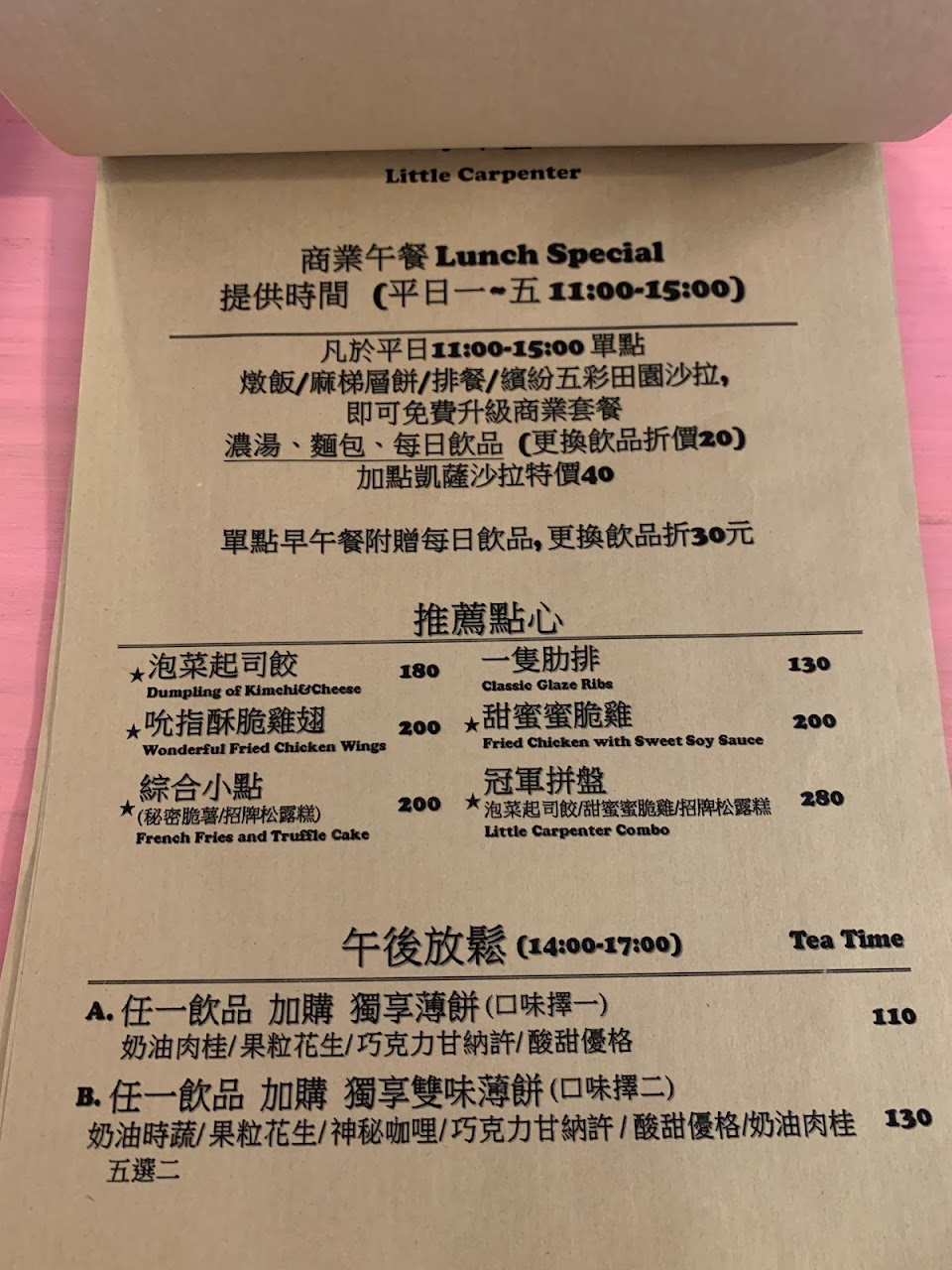 小木匠是我回竹南必去的口袋名單,已經去過好多次了~ 蠻多餐點都很喜歡,每次都只顧著吃,忘了拍照。這次終於有好好的幫餐點拍個團員照了!