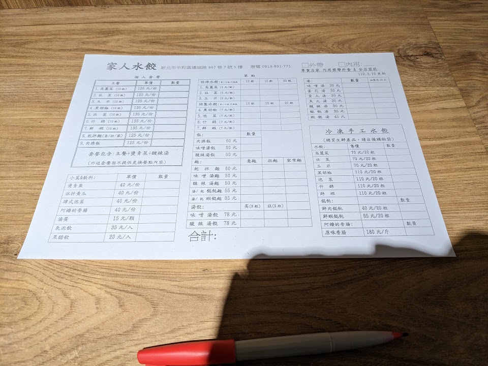 2024最新在地推薦餐廳的菜單_家人水餃的菜單、圖片