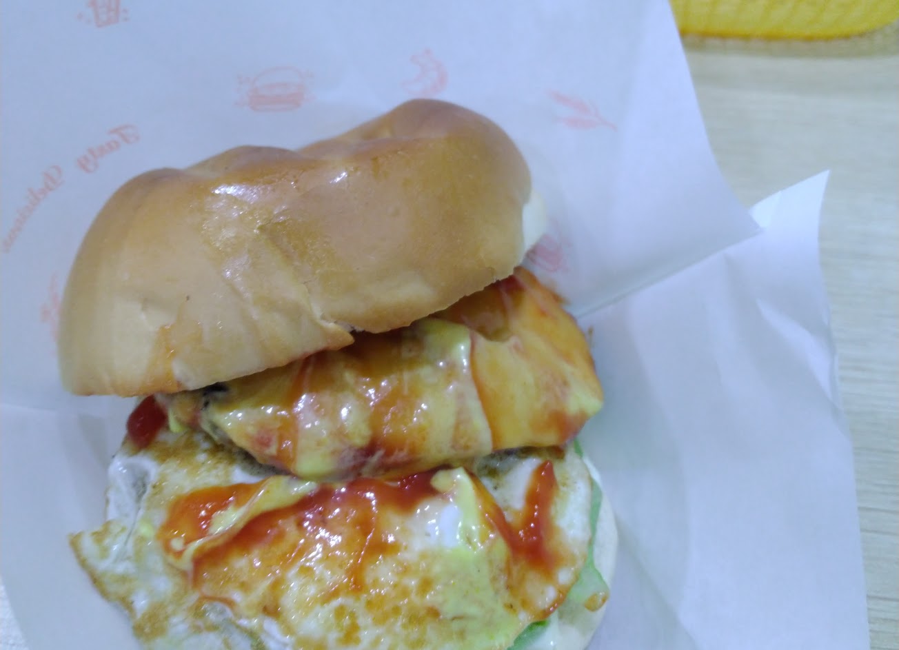 漢堡的麵包和蛋搭起來很不錯。鮪魚蛋餅的鮪魚有洋蔥,不喜歡。