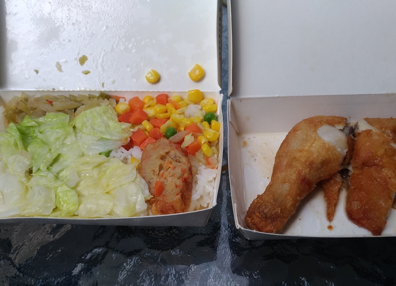 雞腿不錯吃啦!但配菜真的太可怕了,尤其現在菜錢蠻便宜的,結果青菜四五根,配菜就豆芽菜跟一個隨便的炒蛋(還有蛋殼),飯也爛爛的,不會再回購!