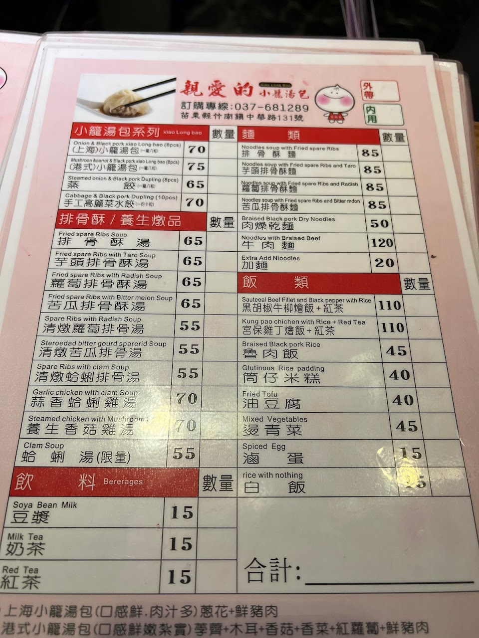 餐點:1