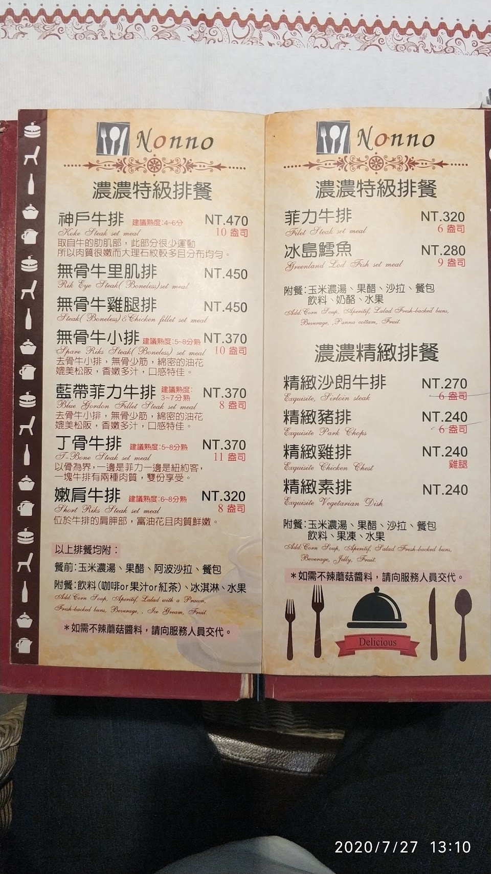 2024最新在地推薦餐廳的菜單_濃濃牛排館的菜單、圖片