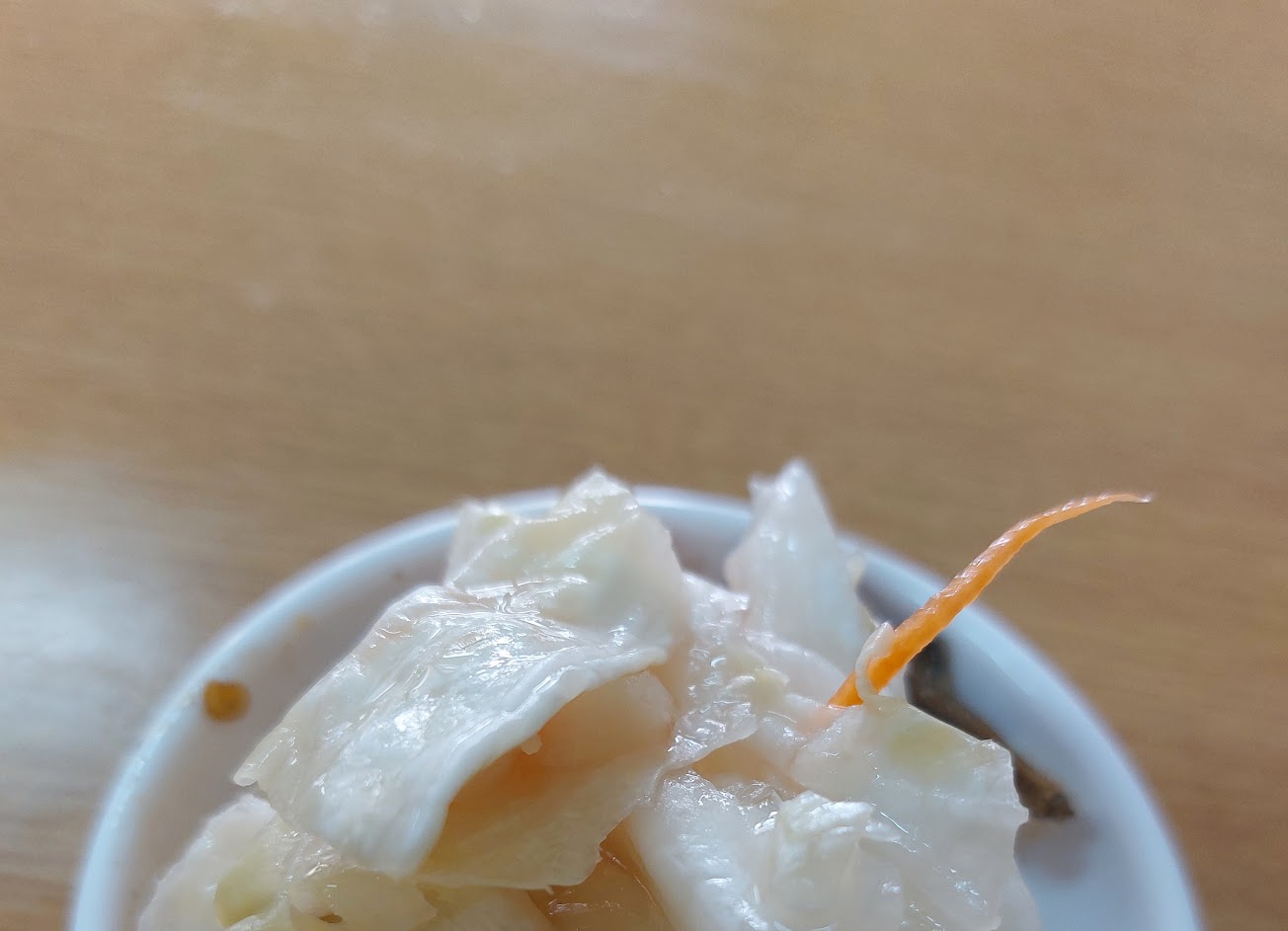 老闆娘很親切,還有免費的台式泡菜跟小魚乾可以吃,個人很喜歡泡菜,牛肉麵的湯頭還剛好是我喜歡的濃度,沒有加麵加湯就吃很飽了?