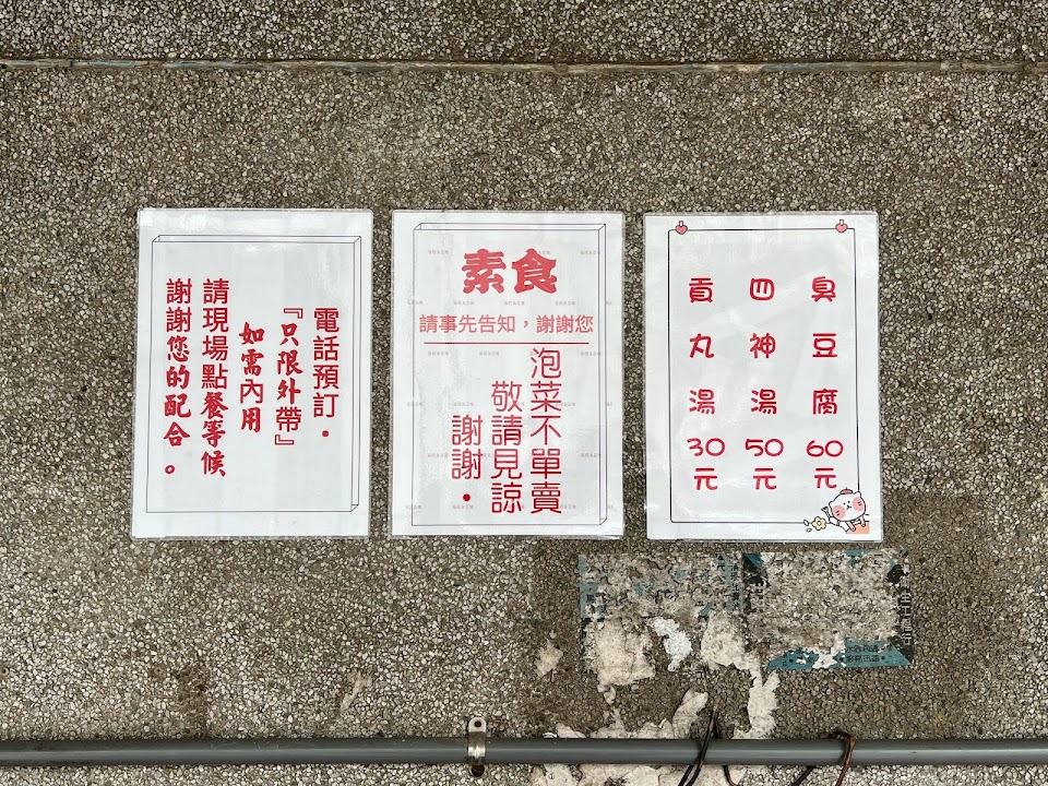 可以和老闆娘說要做素食的,也能說明幾份不辣or辣椒另外放,臭豆腐60元,一份有五塊,咬下去蠻juicy,臭豆腐中間有開口可以夾泡菜一起入口,四神湯也蠻好吃的,推推!