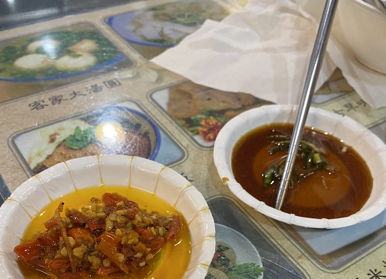 客家鹹湯圓內餡包瘦肉與蘿蔔絲,湯頭好料實在。另外推薦乾拌麵,麵體Q彈,配料是醃過的豬肉絲,非常好吃。店家只營業到晚間六點,太晚到就吃不到了。