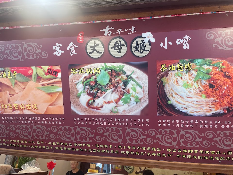 第一次來到苗栗的南庄老街,這裡好多在賣有關於桂花的東西,不管是吃的還是喝的都會看到桂花的自語,偶然經過丈母娘豆乾,看到外面擺放著熱騰騰的豆乾,看起來熱熱的那種豆乾感覺好好吃?,以前吃的豆乾都是都是超商買的,一包裝的那種,這次看到既然有在賣熱的豆乾好特別,人生中第一次看到,當然就是買起來吃,店家的豆乾沒有分大小玩就是一份量,一個人吃可能會太多,兩個人吃一份剛剛好,因為要逛街,所以要留些胃吃很多不一樣的美食,對!!這個豆乾它的蒜味跟蔥味很足,所以如果你不喜歡蒜味跟蔥味的人可能要思考一下,因為店家只有賣「蒜香滷味豆乾」,吃了一碗,滿滿一整天的大蒜味??,我個人是沒有很喜歡蒜頭的味道,但是因為他很特別,所以還是給他吃起來是真的還不錯????,然後回家狂刷牙、值得??